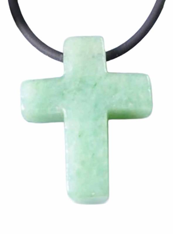 Aventurin Kreuz grün Edelstein Ketten Anhänger quer gebohrt,