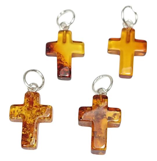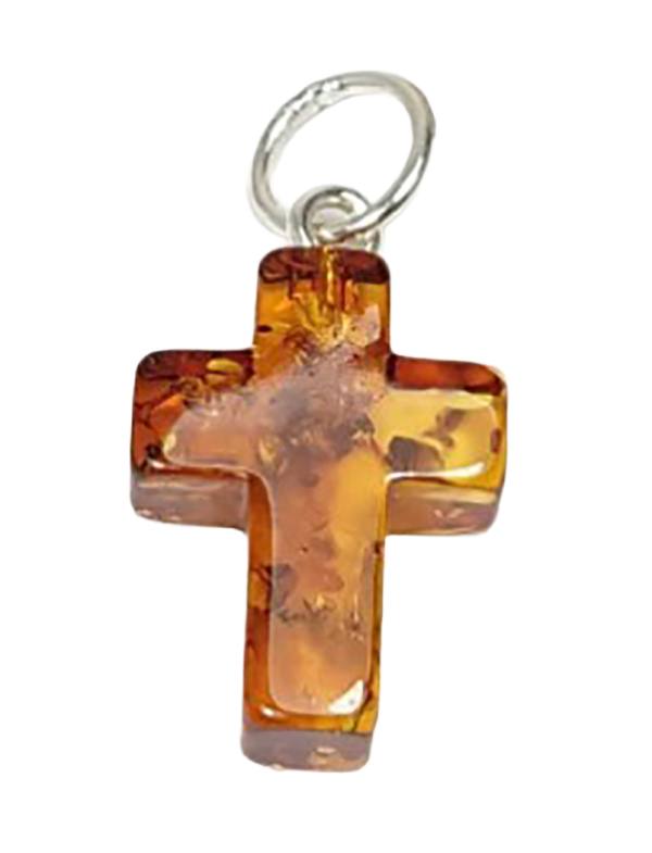 Kleiner Bernstein Kreuz Anhänger 925er Silberöse,