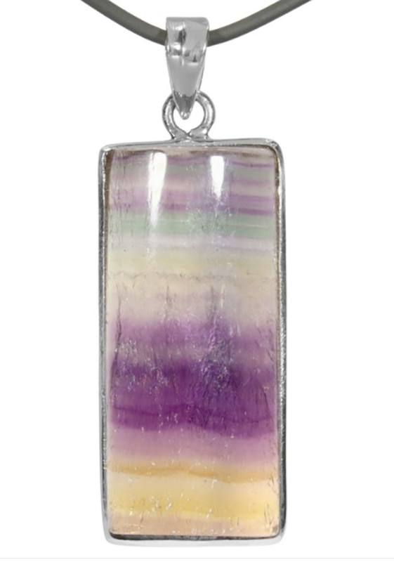 Fluorit Regenbogenfluorit Unikat Cabochon mehrfarbig Heilstein Anhänger 925er Silberfassung,