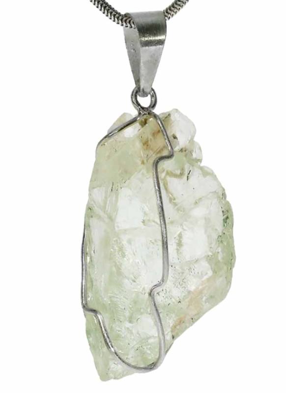 Hiddenit Lithiumsmaragd freeform Edelstein Rohstein Silber Ketten Anhänger Spodumen