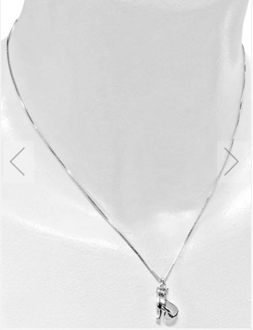 925er Echtsilberkette poliert mit Katze und Verlängerung (42 cm pus 3 cm),