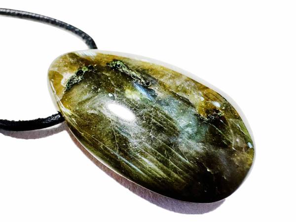 Labradorit Edelstein Ketten Trommelstein Anhänger quer gebohrt