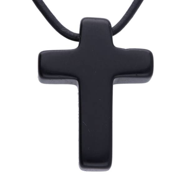 Onyx Kreuz schwarz Edelstein Ketten Anhänger quer gebohrt