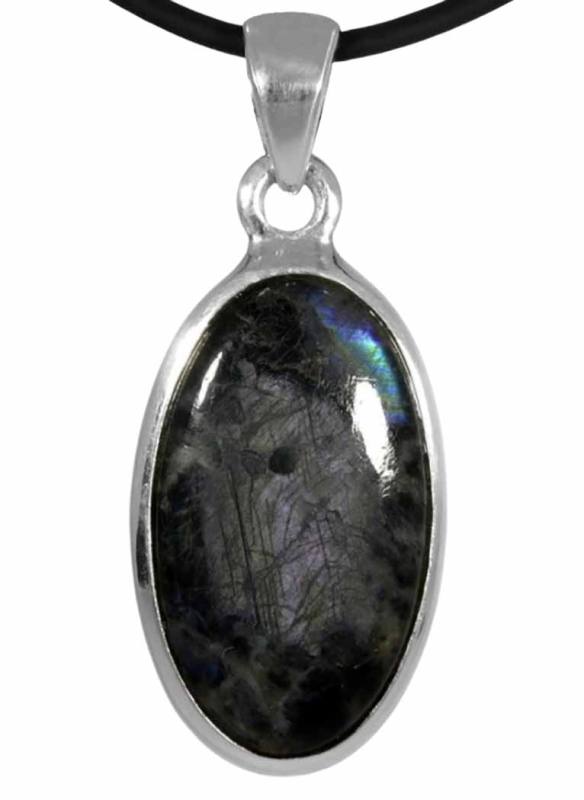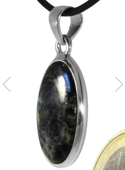 Spektrolit Labradorit Edelstein Ketten Anhänger oval Echtsilberfassung,