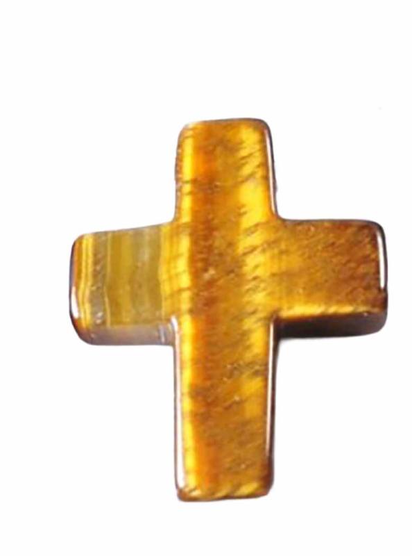 Tigerauge Kreuz braun Edelstein Ketten Anhänger quer gebohrt,