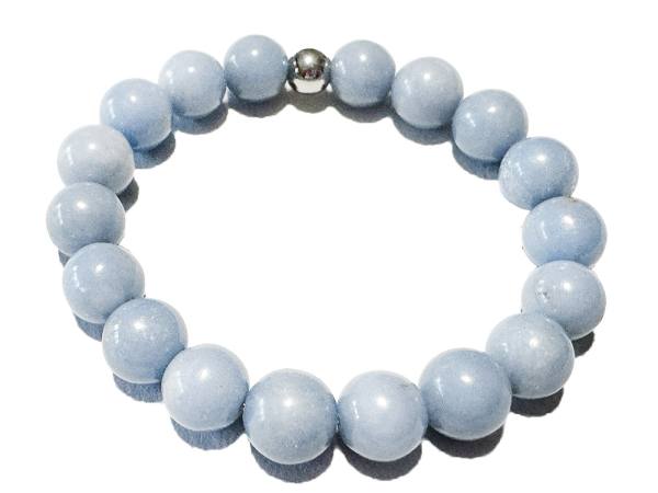Hellblaues Angelit Edelstein Armband mit Edelstahl Kaschierperle,