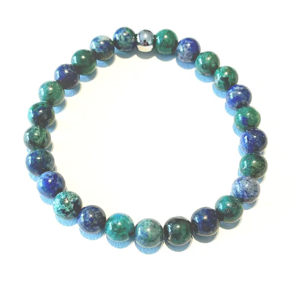 Azurit-Malachit: Seelenfrieden, Verstand und Gefühle im Einklang, ausgeglichene und gehobene Stimmung, Schattenarbeit.