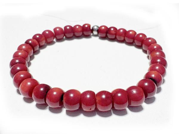 Bambuskoralle Koralle tiefrot Button Edelstein Stretch Armband Längen Wahl mit Edelstahl Perle,