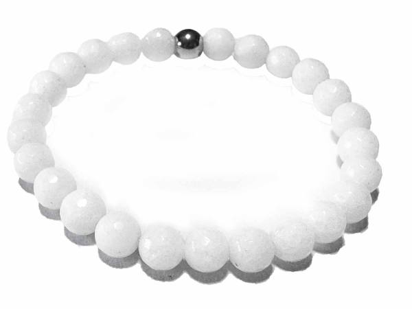 Jade weiß facettiert Edelstein Stretch Armband mit Edelstahl Kaschierperle Längen Wahl,