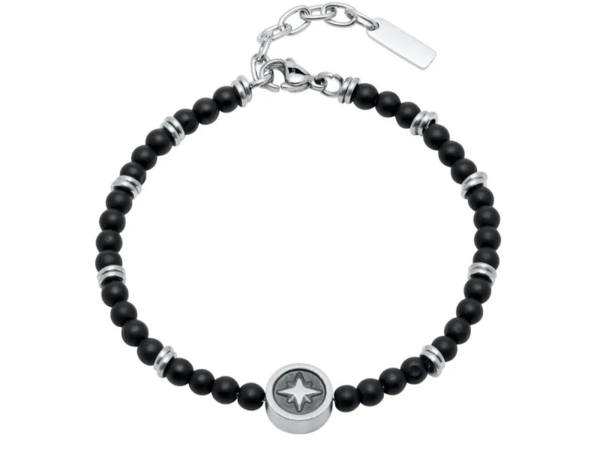 Onyx schwarz Edelstein Edelstahl Armband mit Symbol Kompass,
