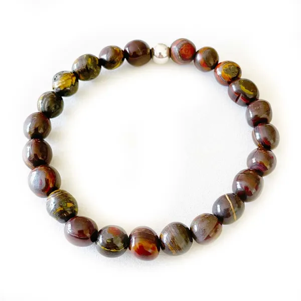 Tigereisen Edelstein Elastik Stretch Armband mit Edelstahl Kugel,