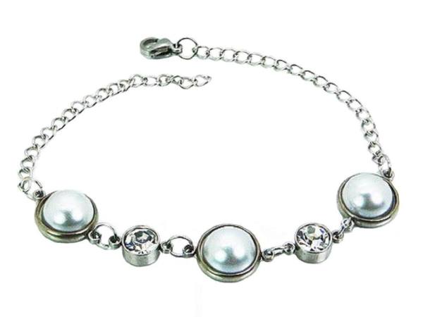Edelstahl Armband mit Perloptik und Zirkonia,
