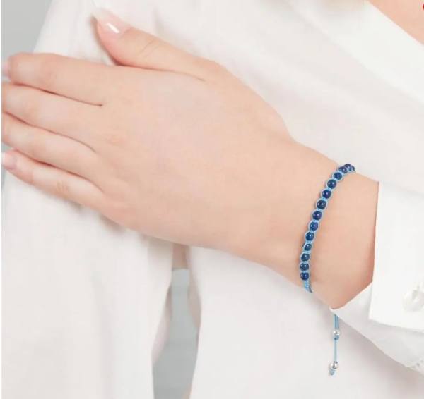 Lapislazuli blau Textil Edelstein Armband mit Echtsilber größenverstellbar,
