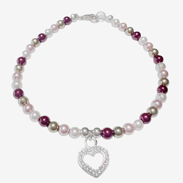 Süßwasserperlen Armband mit Herz Anhänger Silber Verschluss