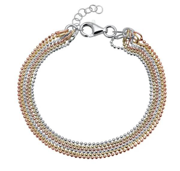 Tricolor mehrreihiges Echtsilber Armband Kugeln größenverstellbar,