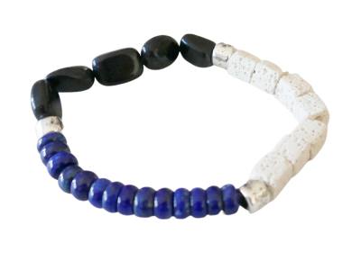 Edelstein Stretch Armband mit Lapislazuli - Blaufluss und Lava weiß (inkl. versilberten Keramikperlen),