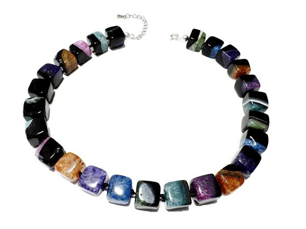 Achat Edelstein Würfel Kette Halskette bunt mehrfarbig