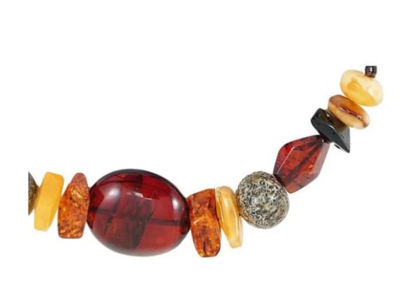 exklusives Einzelstück, aufwendig geschliffene Bernsteinelemete auf 7-reihigem Lederband aufgezogen,
