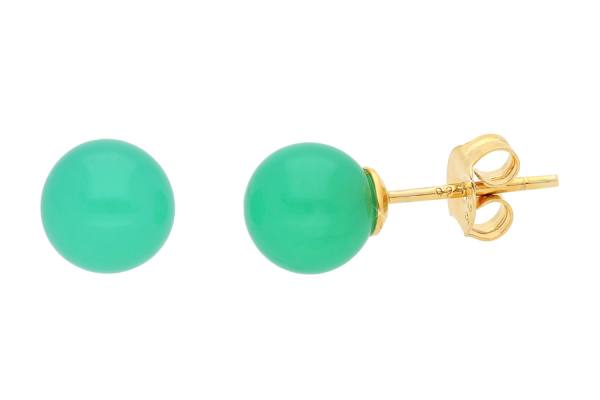 Chrysopras grün AA Edelstein Kugel Ohrstecker Echtsilber vergoldet