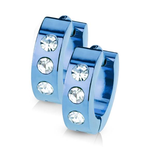 Edelstahl blau Creolen Ohrringe mit Kristall