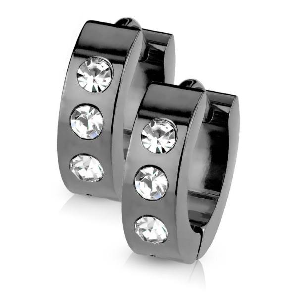 Edelstahl schwarz Creolen Ohrringe mit Kristall