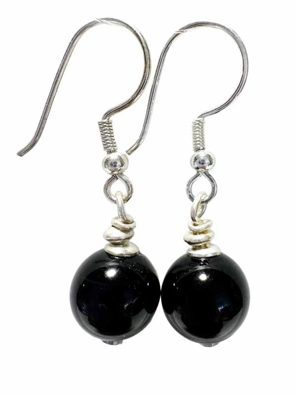 Onyx schwarz Edelstein Kugel Ohrringe Ohrhänger Echtsilber,