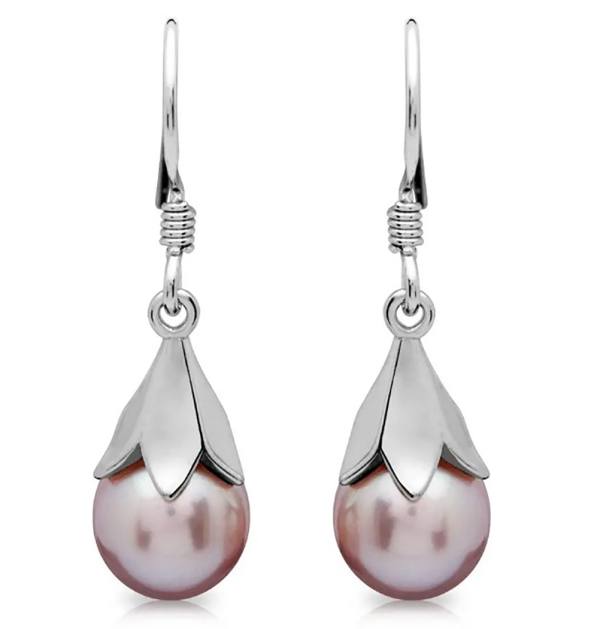 Süßwasserperle flieder rose Tropfen Ohrringe Ohrhänger Echtsilber